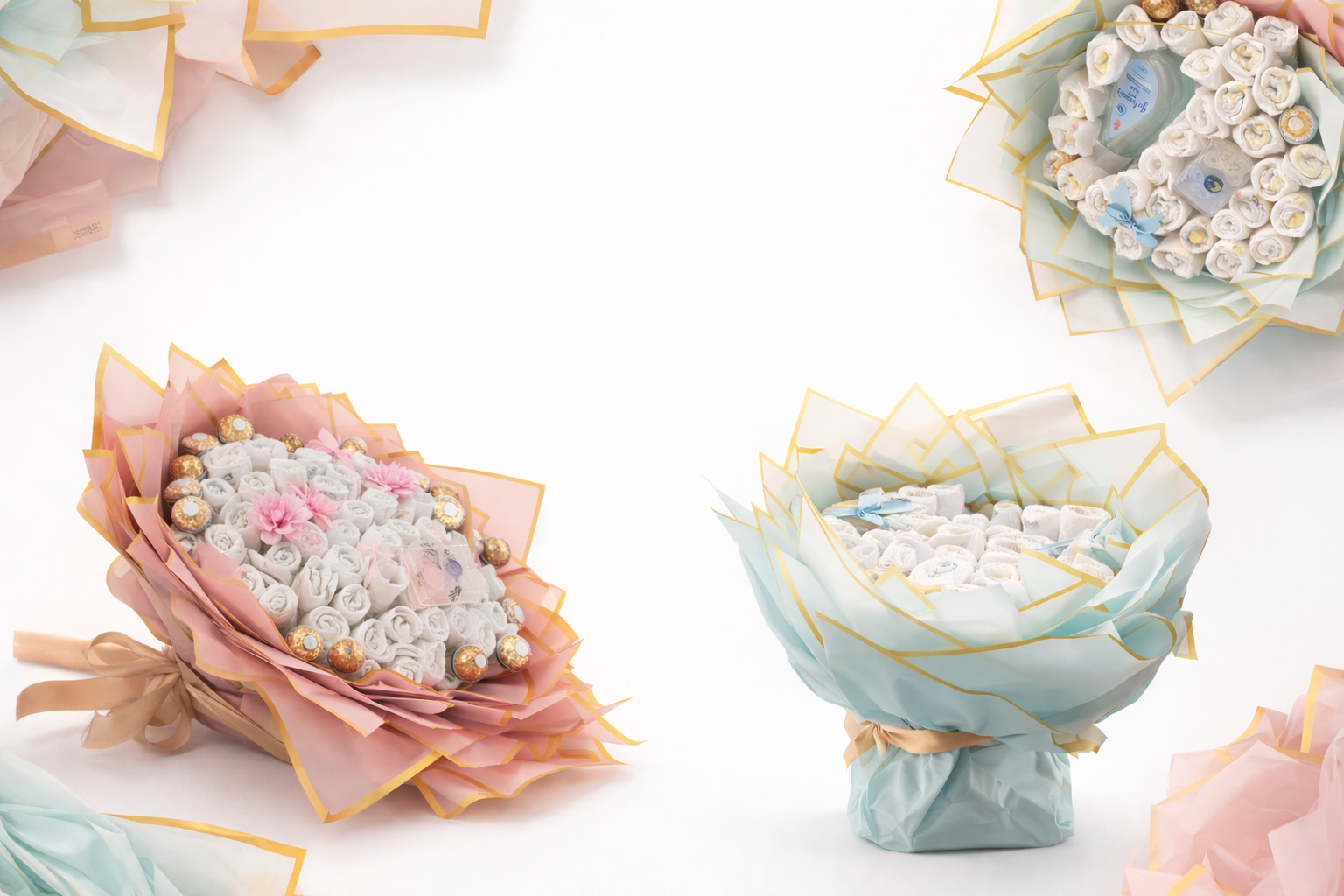 Avdekk den perfekte blandingen av sjarm og funksjonalitet med våre unike bleiebuketter.